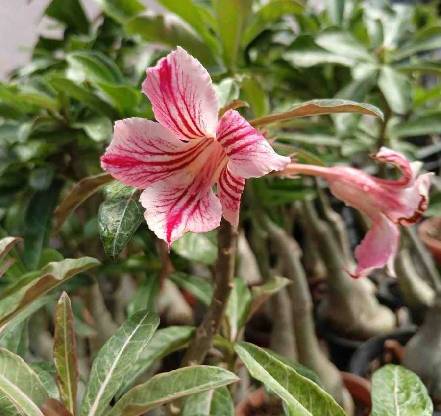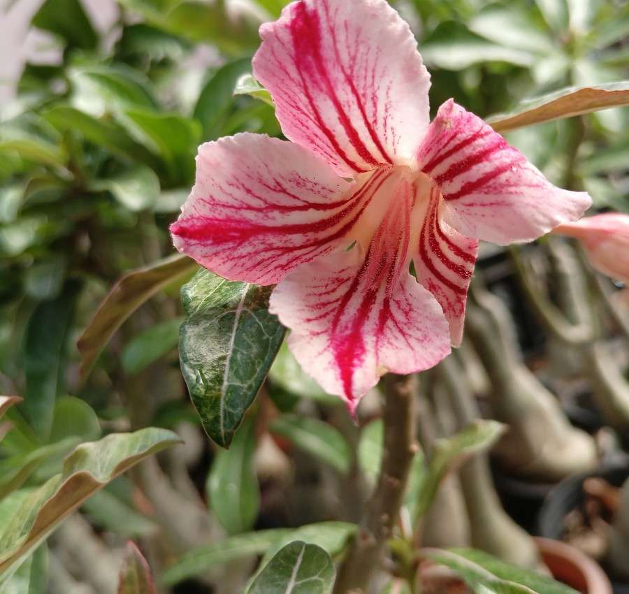 Red and White Striped Single Petal Adenium Striking Elegance in Every Bloom