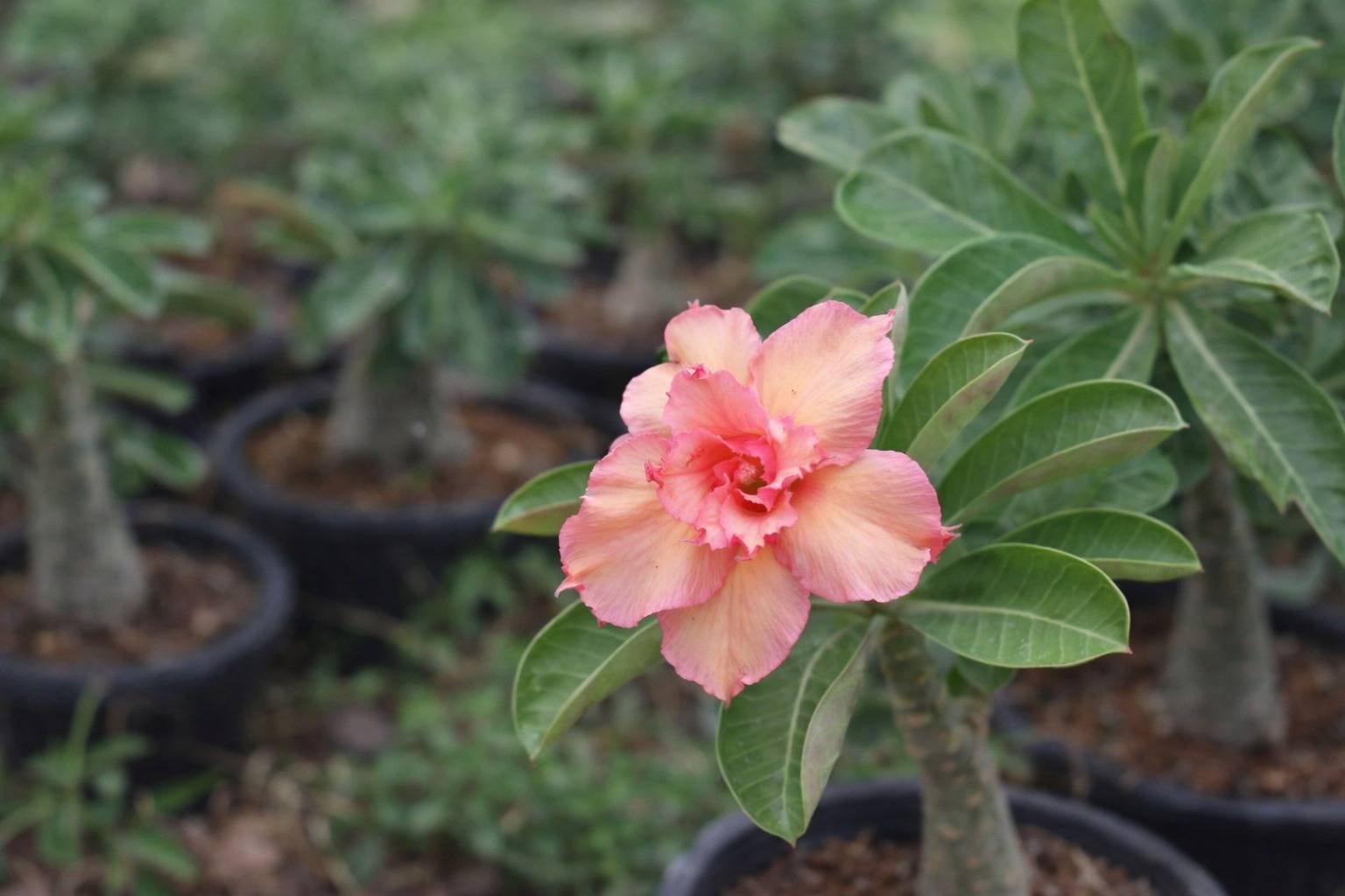 Soft Peach and Blush Pink Double Petal Adenium Desert Rose Plant