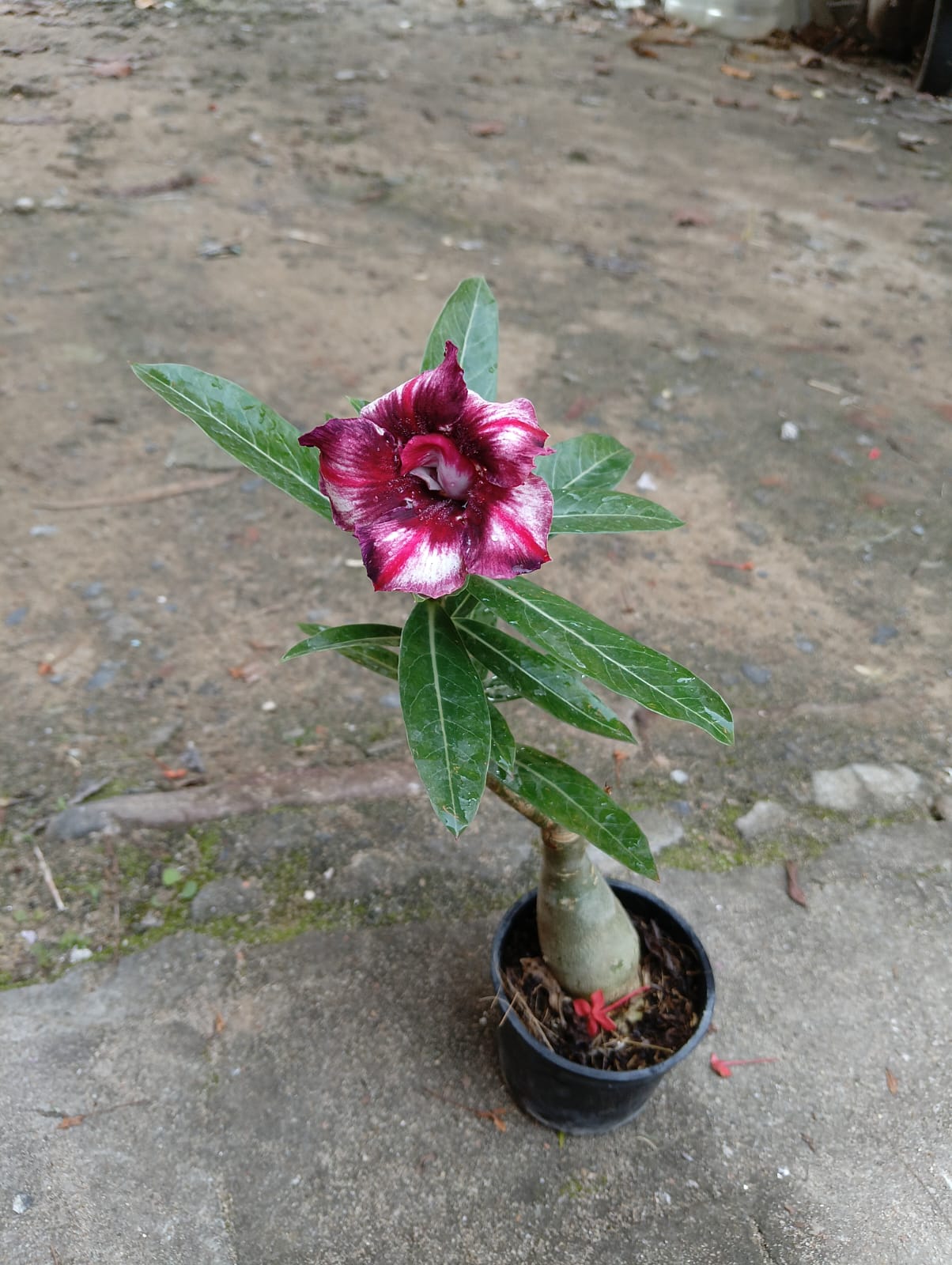 1 Healthy Double Petal Adenium with Velvel Burgundy & Soft White Accents