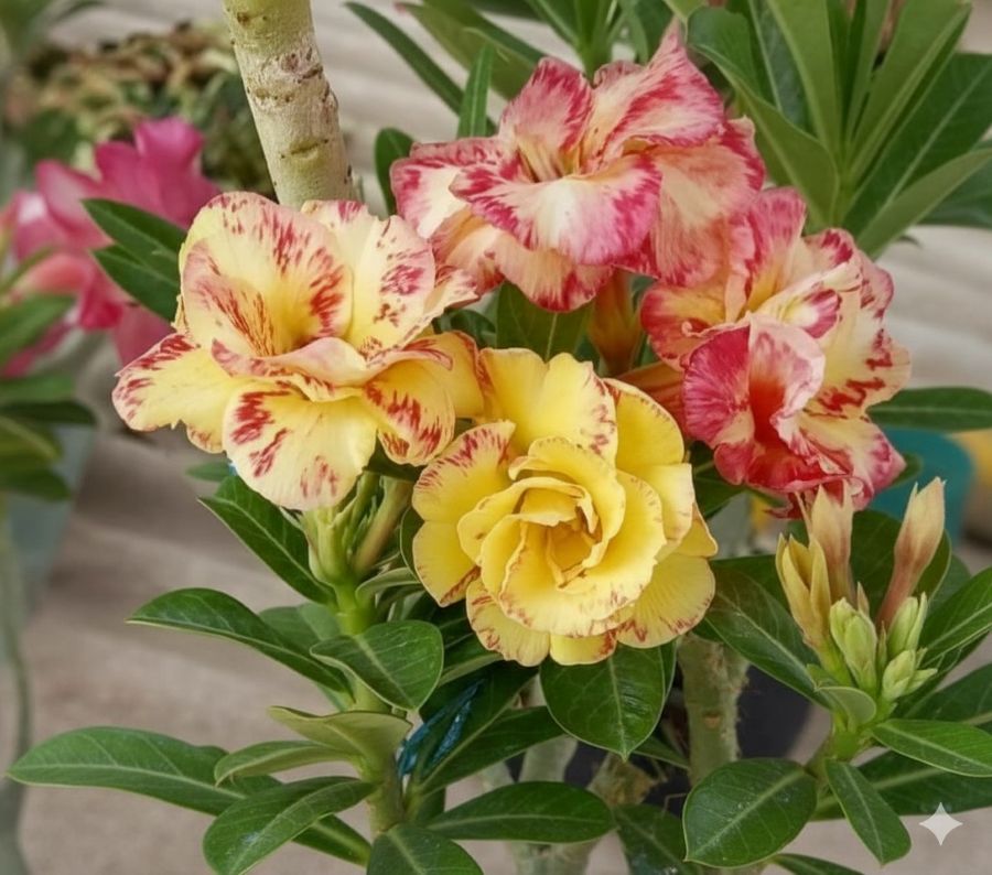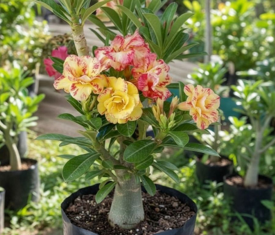 Beautiful Double Adenium Desert Rose Flowers Plant with Yellow and Pink Shades